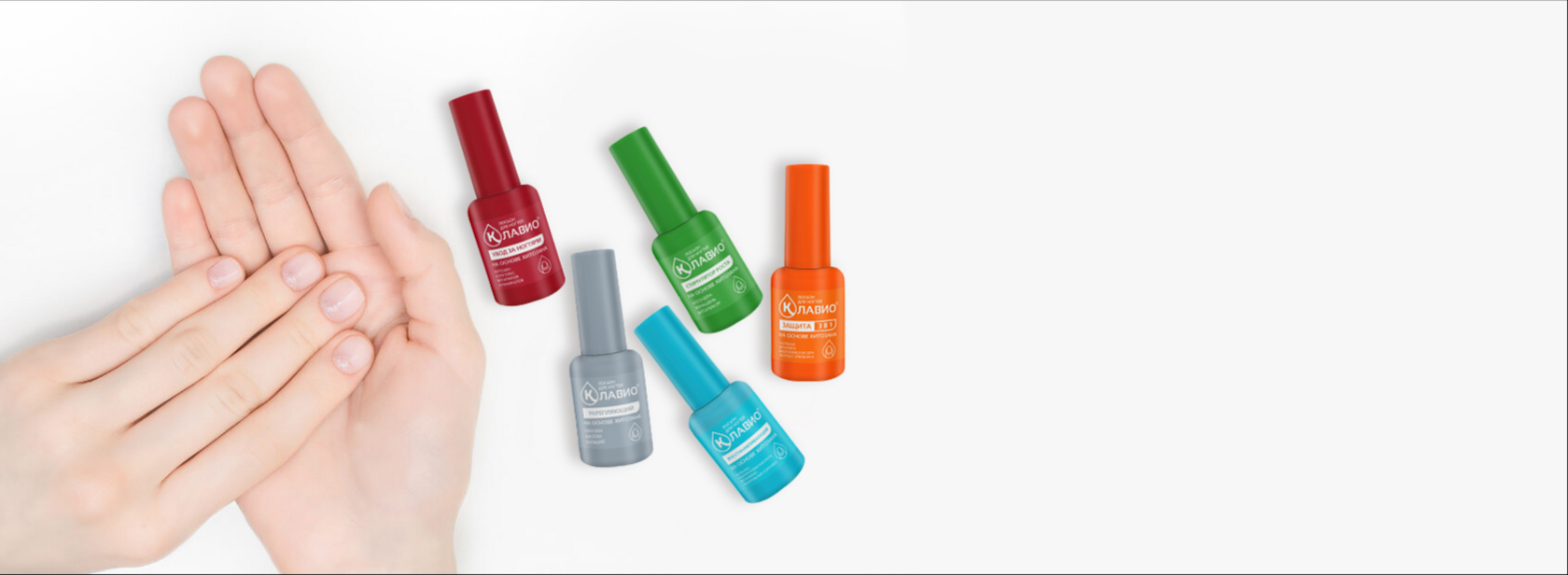 «Специально для лечения, восстановления и поддержания здоровья ногтей ООО «ФАРМТЕК», Россия, была разработана линейка Лосьонов КЛАВИО®»
